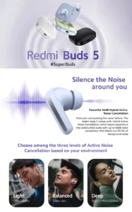 هندزفری بلوتوث Xiaomi Redmi Buds 5 جدیدترین نسخه هندزفری های ردمی بوده که روانه بازار شده است و از تکنولوژی حذف نویز فعال بهره برده است.